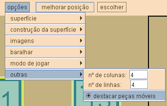 Em cada momento, há no puzzle uma posição vazia. As peças próximas aparecem com bordo amarelo e, clicando ou arrastando, consegue-se deslocá-las para essa posição vazia. Em cada momento, as peças com bordo amarelo são as únicas que se podem mover. Designá-las-emos por "peças móveis".