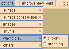 Note - if a movable piece on the surface is "behind" the empty position then clicking on the surface next to that movable piece will not cause it to move (this is because the program "sees" the empty position as a transparent piece which "prevents" contact with the piece behind).