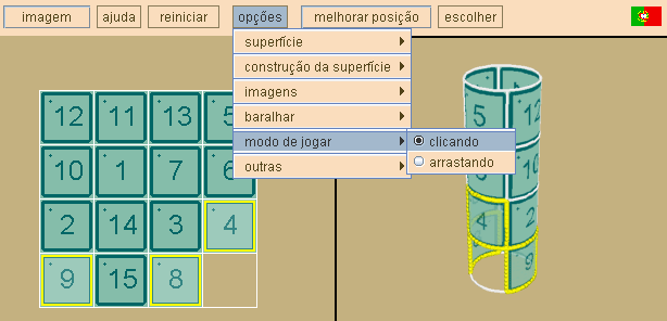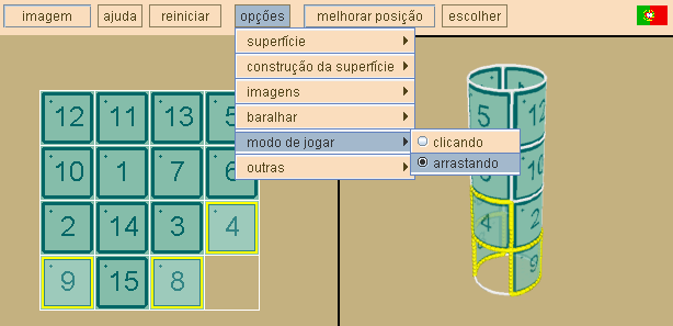 Em cada momento, há no puzzle uma posição vazia. As peças próximas aparecem com bordo amarelo e, clicando ou arrastando, consegue-se deslocá-las para essa posição vazia. Em cada momento, as peças com bordo amarelo são as únicas que se podem mover. Designá-las-emos por "peças móveis".