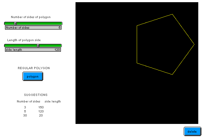 EXAMPLE 1: Construction of regular polygons. We can choose the number of sides as well as their lengths using the arrows (green bars with sliders)