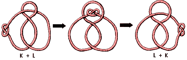 Juntar um destes nós a uma parte diferente do outro nó pode parecer que altera a sua soma. Podemos mostrar que assim não é manipulando um nó em torno do outro. Daqui podemos tirar uma regra geral sobre a soma dos nós:
