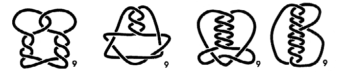 Aqui está a segunda parte da nossa tabela de nós. De facto, só contém nós primos com, no máximo, 9 cruzamentos e, além disso, não permite distinguir um nó da sua imagem no espelho. No entanto, dá uma ideia da complexidade do problema.
