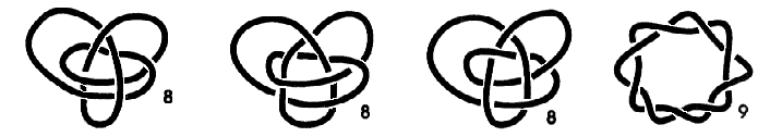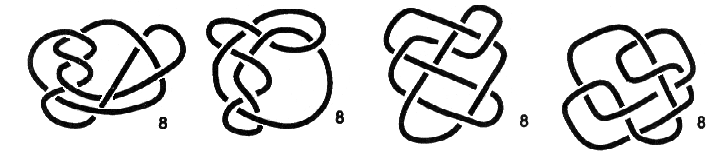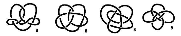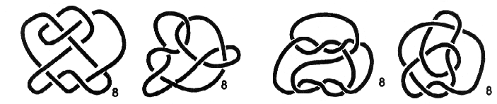 Ainda há mais 44 nós com, no máximo, 9 cruzamentos, isto sem se estar a distinguir um nó da sua imagem no espelho!