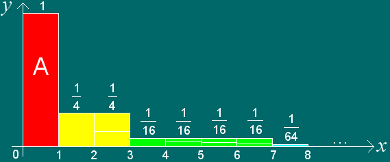 Coloquemos agora o mesmo problema: Quantas latas de tinta seriam necessárias para pintar a região cinzenta? Comparando esta figura com a primeira, somos tentados a dizer que basta um pouco mais de tinta (talvez três ou quatro latas de tinta). Mas será que é assim? Façamos uma análise semelhante à que foi feita na primeira soma considerada. Tem-se
