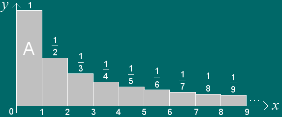 1 + 1/2 + 1/3 + 1/4 + 1/5 + 1/6 + ... + 1/n + ... > 1 + 1/2 + 1/2 + 1/2 + 1/2 + 1/2 + ... + 1/2 + ... .