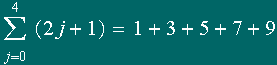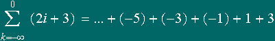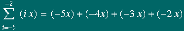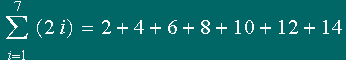 onde i é o chamado índice da soma, que toma valores inteiros entre N1 (limite inferior) e N2 (limite superior), e f é a função que descreve as parcelas da adição. Por exemplo, na adição (*) N1 = 1, N2 = 1000 e f é a função identidade: